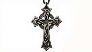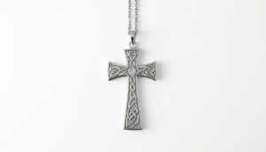 Our Celtic Cross pendants come with other traditional Celtic design elements that make them even more rich and dimensional. For example, Celtic interlace (knot work) may be used in order to illustrate eternity. These knot work patterns are beautiful, and their lines flow endlessly into themselves, illustrating the interconnectedness of all things. Other symbols that you may find on our range of pendants include romantic Irish Claddagh symbols, which illustrate love and loyalty, or Trinity Knots, which symbolize the Holy Trinity.